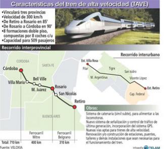 La construcción del Tren de Alta Velocidad (TAVE) incorporará en su corredor a siete estaciones estratégicas que lograrán unir a las ciudades de Buenos Aires, Rosario y Córdoba, en 710 kilómetros que podrán ser recorridos en un tiempo estimado menor a las tres horas.