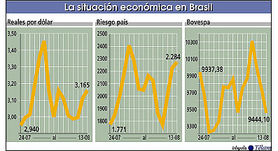 San Pablo, 13 de agosto (Télam).- La crisis financiera volvió a castigar este martes a Brasil, con nuevas subas en el dólar y el riesgo país.