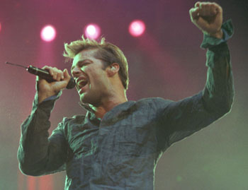 De buen humor y ataviado con una remera blanca, el vocalista se trasladó desde el Sheraton Hotel hasta la intersección de las calles Pedro de Mendoza y Pinzón (en los galpones de Arenero Buenos Aires) para realizar el rodaje que culmina a las 20 de este lunes. (Télam)