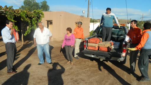 Esta vez, se trasladó junto al Gabinete del Municipio y gente de Defensa Civil de la Provincia, Bomberos voluntarios de Tinogasta, allí fué recibido por el Delegado Municipal Guido Barrionuevo e inmediatamente se dispuso a visitar a las familias que sufrieron los daños más graves.