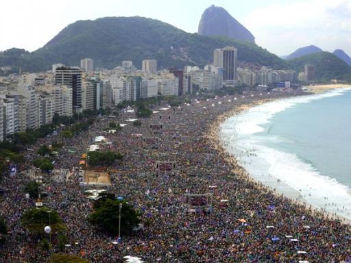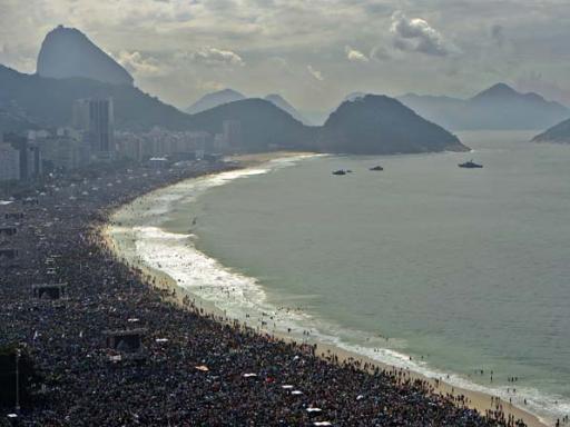 Luego hizo su primer discurso a los peregrinos de todos los países que vinieron a Brasil para las jornadas, en la fiesta de recepción en la playa de Copacabana.
