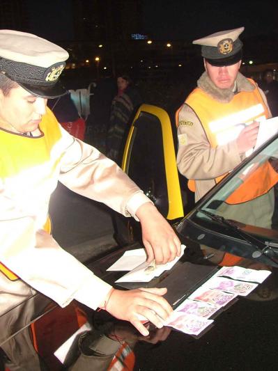 Efectuada una requisa al taxi, se encontró, en su interior, otro billete de cincuenta australes, que, aparentemente, era una fotocopia.