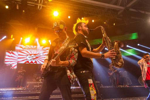En otro tramo de la noche, el público pudo apreciar un buen show de la mano del conjunto cordobés Los Caligaris, que por primera vez subió al escenario mayor del Poncho. Fiel a su propuesta, caracterizada por el cuarteto en conjunción con una fiesta circense, Los Caligaris se ganaron el cariño del público.