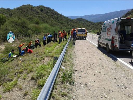 El mismo fue protagonizado por una motocicleta Honda Tornado 250cc., de color rojo con blanco, conducida por Héctor Darío Barrionuevo (32) acompañado por su padre Héctor Barrionuevo (55) , luego de sufrir el reventón del neumático delantero, pierden el control del rodado y salen despedidos hacia un barranco de aproximadamente 15 metros de profundidad.