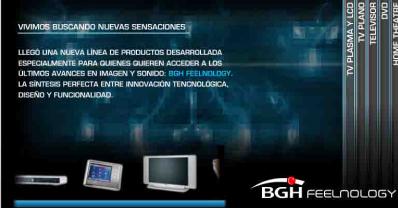 BGH Feelnology cuenta con una amplia línea de productos que incluye TVs planos y convencionales, TVs de Plasmas, TVs de LCDs, Home Theatres, Grabadores y Reproductores de DVDs, DVDs portables, Reproductores de MP3 y MP4.